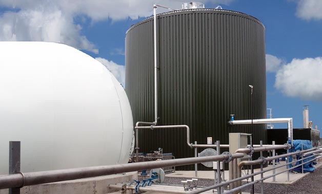 The biogas from the anaerobic digestion contains a high concentration of methane that is then fed into combined heat and power (CHP) engines. The output from the CHP means that heat can be fed back into the anaerobic digester tank whilst the power (electricity) is sold back to the National Grid.
