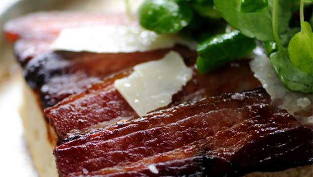 “The bacon is made using traditional methods and it is the addition of the marinade that makes a big difference. It gives it a sweet edge and a really interesting depth of flavour. The combination of sweet and hot is a winner in my book.”