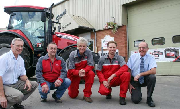 With Richard Read (centre) are members of the McCormick team at Read Agriservices (from left): Brian Yeates, sales; Rex Vincent, parts; Mark Stevens, service; and Dick Bath, sales.