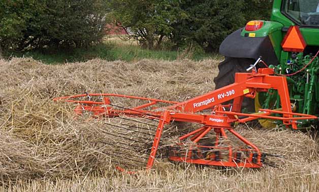 The RV Combi-rake. Two different models are available offering a choice of 3.0m (9’ 10”) and 3.9m (12’ 10”) working widths. The RV machines are robust, simple to operate, and can be used for both tedding and raking.