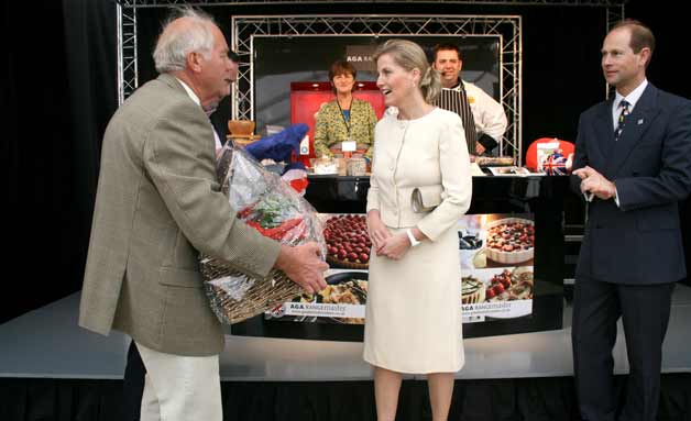 The Earl and Countess of Wessex were shown round the cattle lines and the sheep and pig marquees. The Countess met Johnny Ball who presents the NFU Farming Roadshow, the Farmer’s Market and the Surrey Young Farmers. The royal couple were particularly interested in the woodland crafts and industries and in farm produce, tasting chutney and special Jubilee Tea Bread made with Imbhams Farm Granary flour.