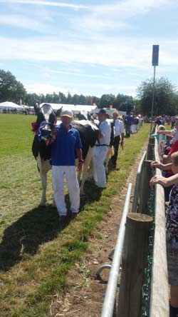 It was a proud day for Head Herdsman Mike Lutman, who led the Walford-reared Walford Manor Matson Lupin in the afternoon parade, where he was presented with the trophy for best dairy cow by the Show President’s wife, Ann Hughes. In addition to the trophy, the Holstein Fresian Matson Lupin also won the Best Udder Award; Best Exhibitor Bred Award; and Holstein Champion.